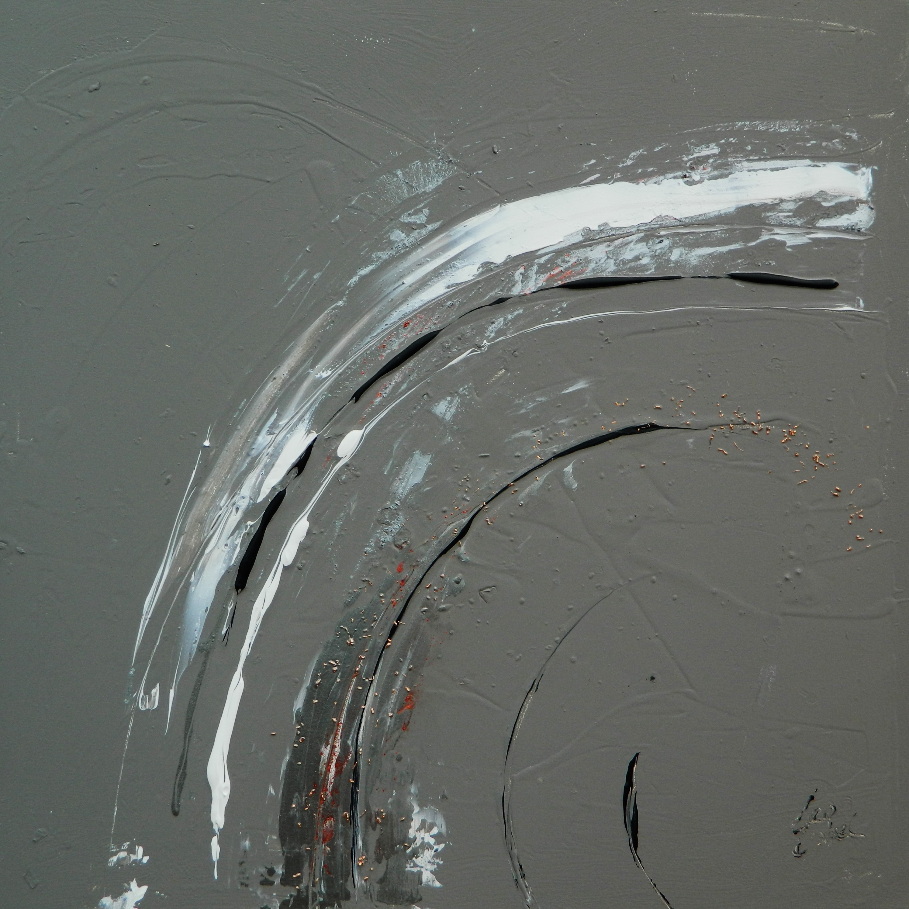 Acrylic and house paint on canvas with metalics and copper shavings. 36 x 36