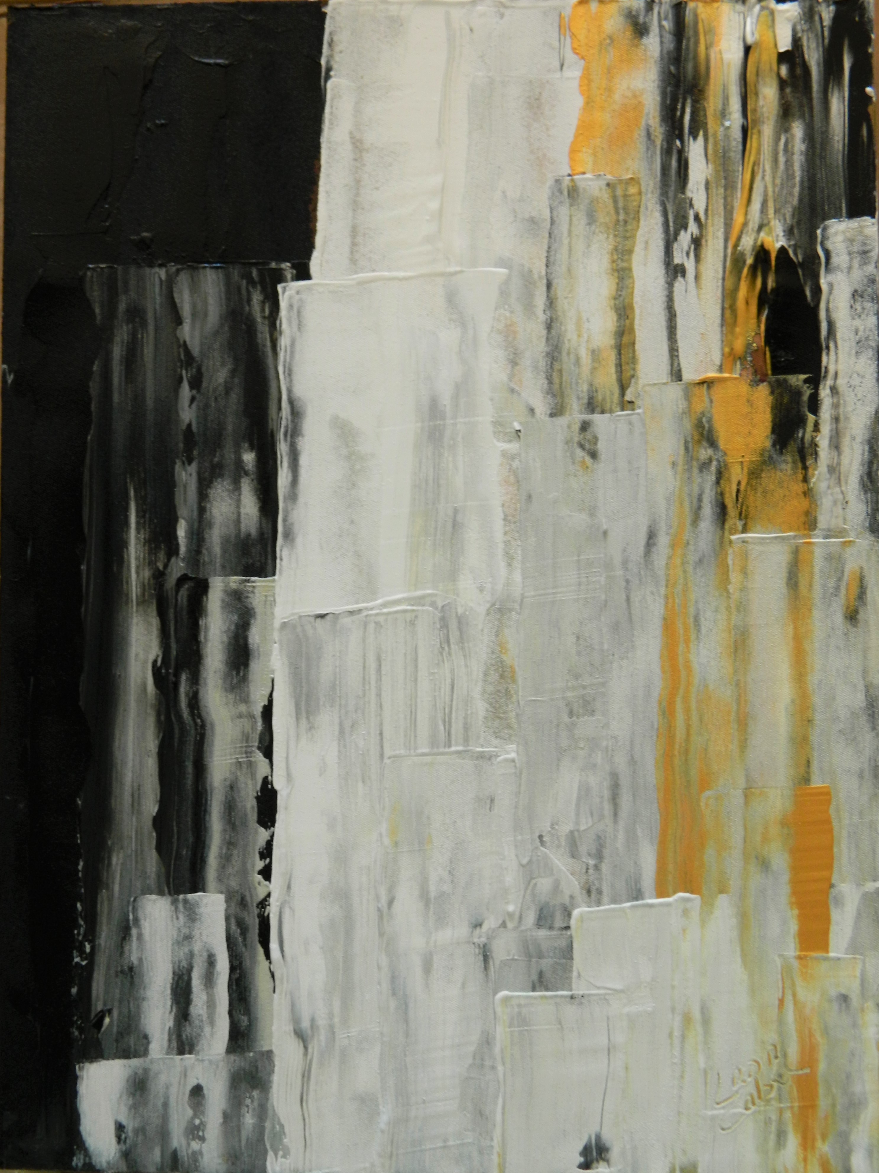 Acrylic on pressed board and wood (built as a canvas is). 16 3/8 x 21 7/8.
