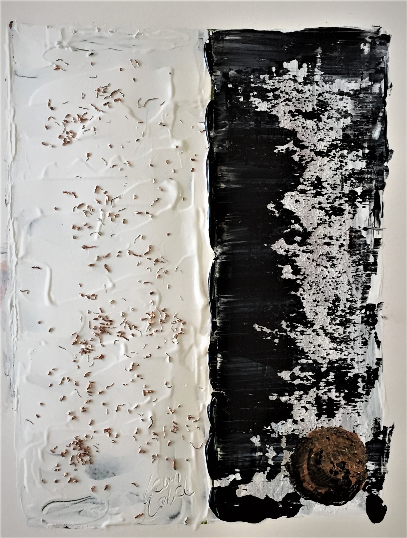 Acrylic with copper shavings on acid free matboard. Matted with acid free matboard; ready to frame. 16 x 20
