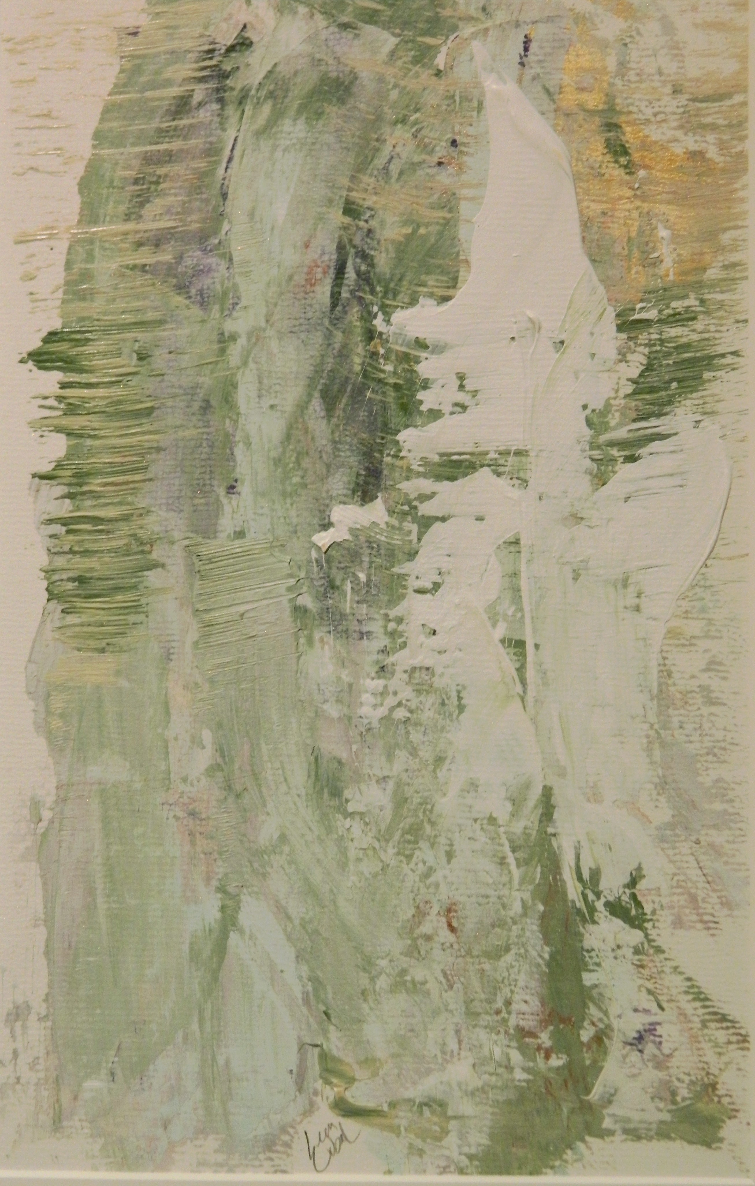 Acrylic on acid free matboard. Framed in white wood & mat. 16 x 20