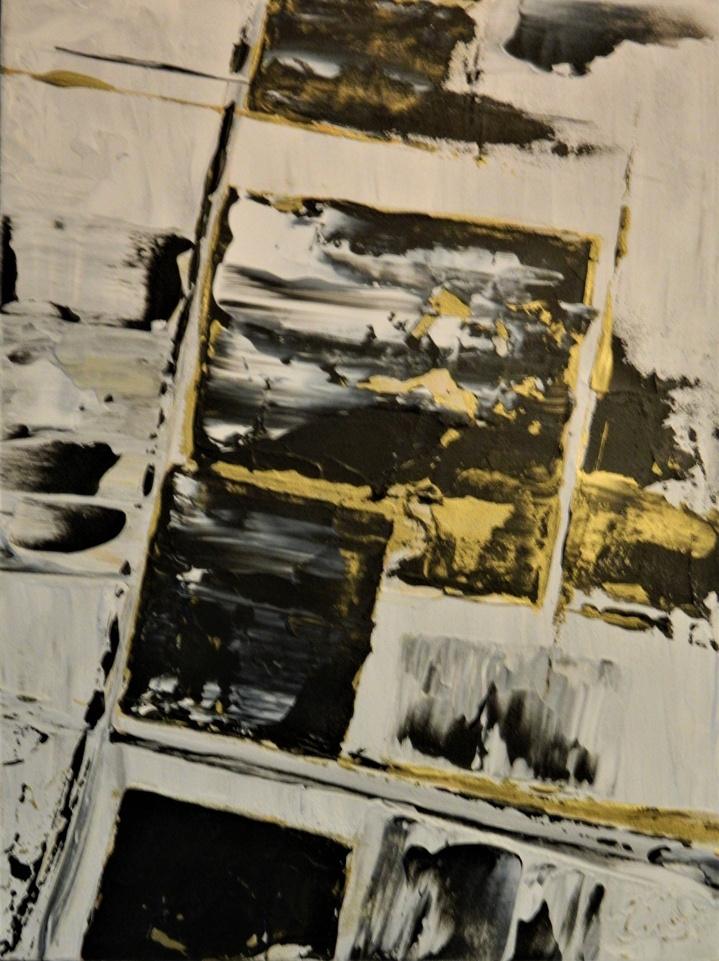 Acrylic on pressed board and wood (built as a canvas is). 16 3/8 x 21 7/8.